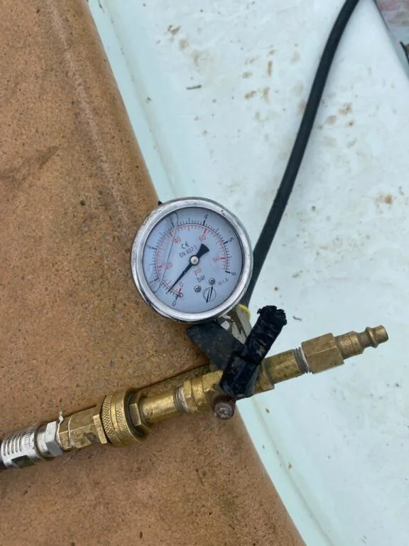Lors de l’intervention, les mises en pression à 0,8 bar ont mis en évidence une fuite sur le réseau de refoulement. En revanche, le réseau skimmer s’est révélé étanche, tout comme les réseaux de prise balai et de bonde de fond. Cette étape a permis de concentrer la recherche sur le bon circuit hydraulique de la piscine.